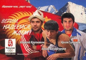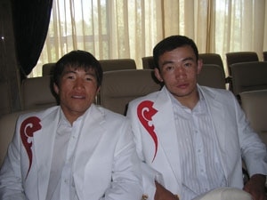 (Бээжин Олимпиадасынын коло медалын жеңген Руслан Түмөнбаев менен күмүш байге ээси Канат Бегалиев )