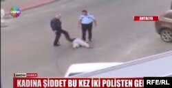 Түркиянын массалык маалымат каражаттары 4-октябрда Анталиянын Алания аймагында жалгыз аялды эки полиция кызматкери сабап жатканын көрсөттү.