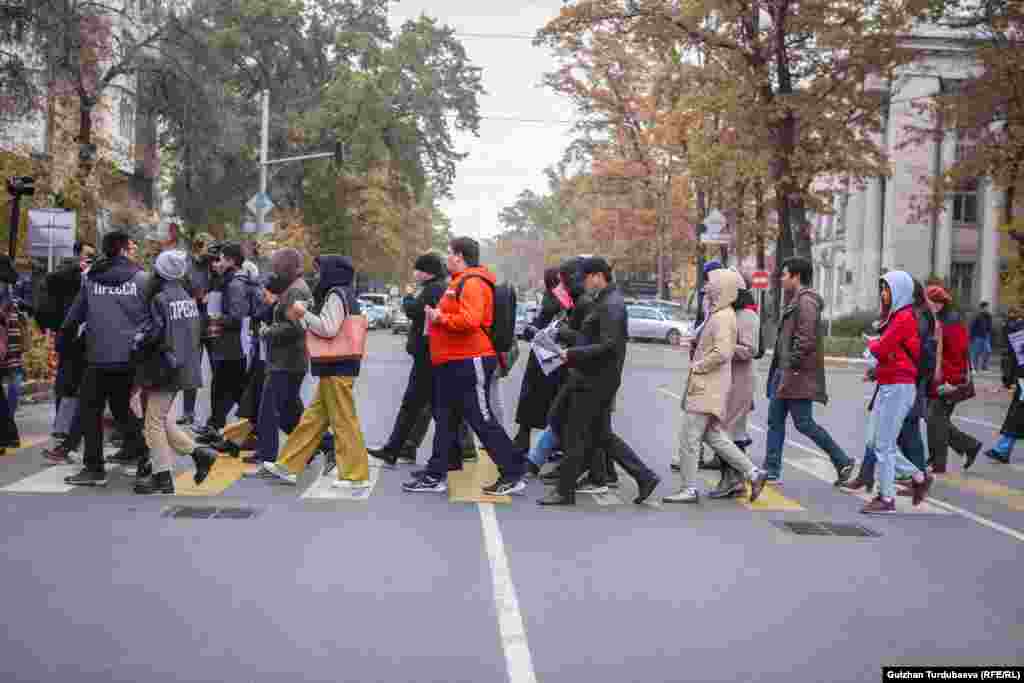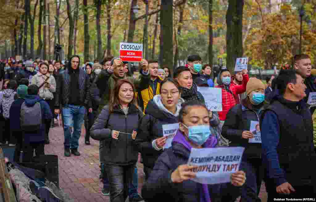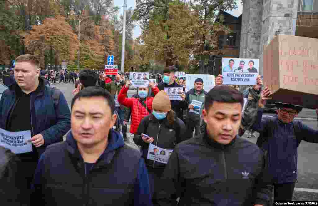 Бишкекте 24-октябрда оппозициялык саясатчы, активисттерди жапырт кармоого каршы жүрүш өттү. Уюштуруучулар 500гө жакын адам катышканын билдирди. Акцияга чыккандар темир жол бекетинин алдына чогулуп, Эркиндик бульвары менен Ала-Тоо аянтына чейин жөө барышты.