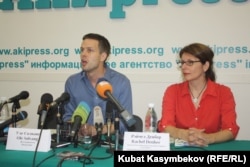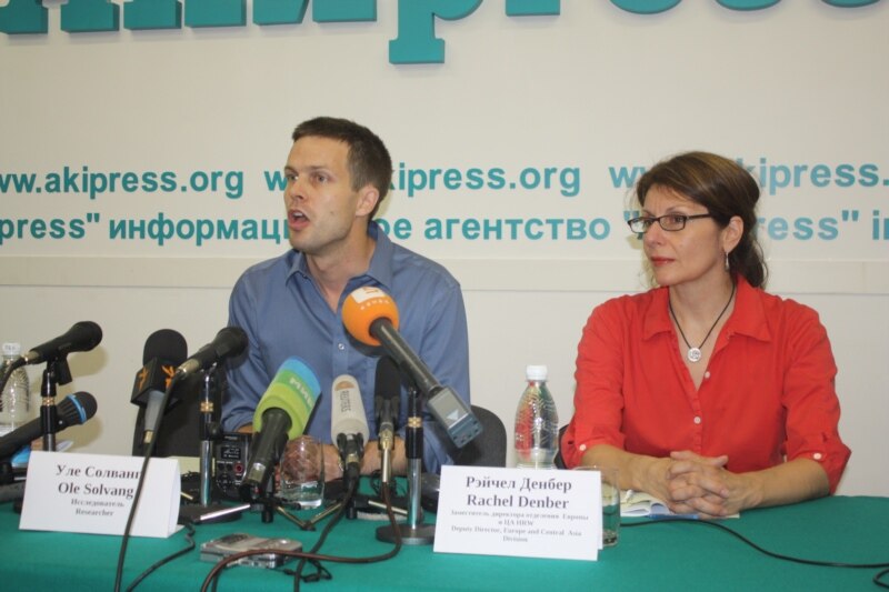 HRW уюмунун Европа жана Борбордук Азия бөлүмүнүн жетекчи орун басары Рэйчел Денбер менен изилдөөчүсү Оле Солванг (солдо) маалымат жыйыны учурунда.