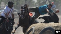 Кыргызстанда той-аштарда көк бөрү оюнун уюштуруп берүү салтка айланган. Сүрөттүн окуяга тиешеси жок.