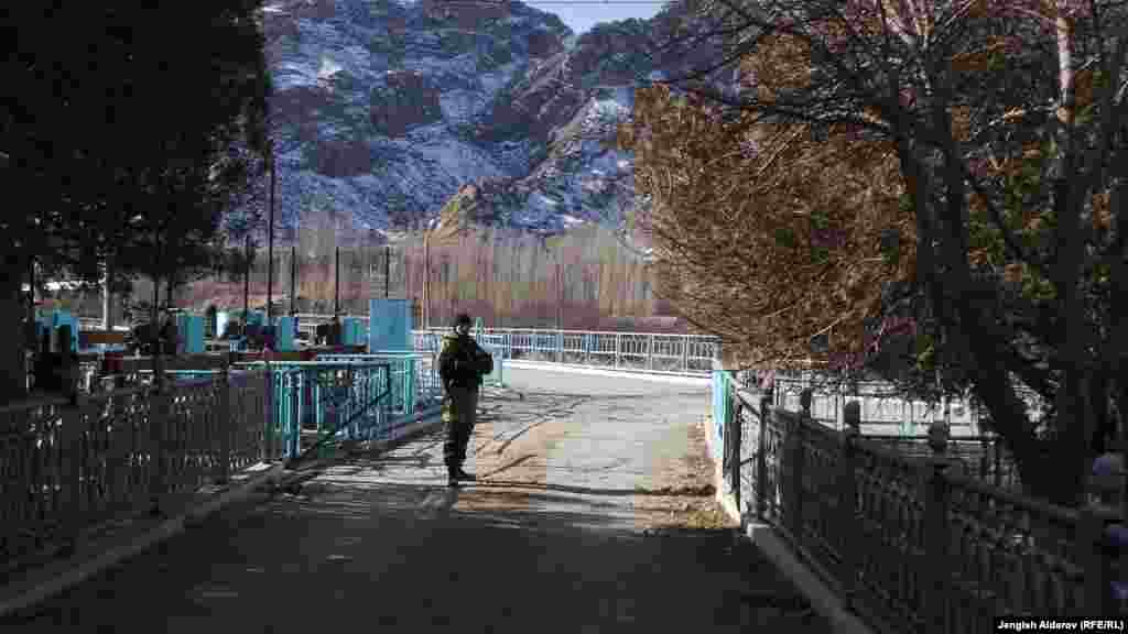Көк-Таш -Ак-Сай жолун куруу иштерин күзөтүп турган чек арачы.