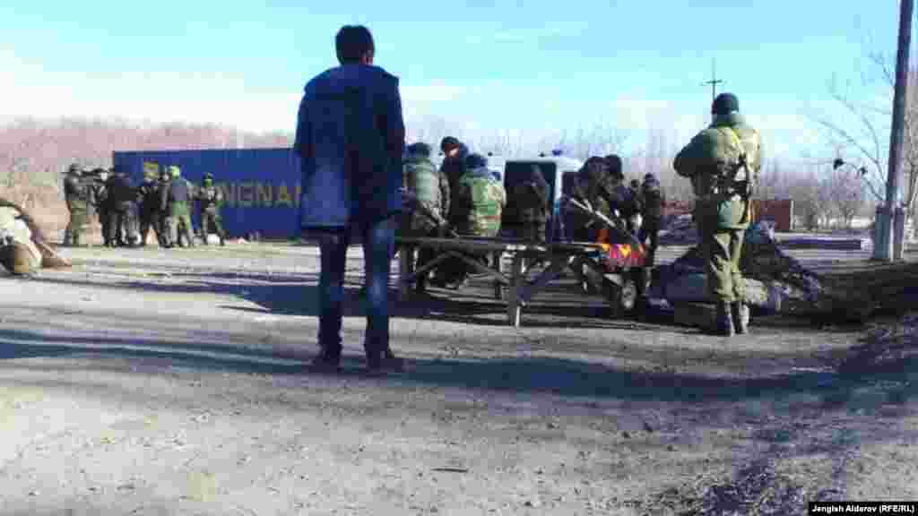 Жергиликтүү тургундар чек арачыларга жылуу кийим-кечек алып келишти.